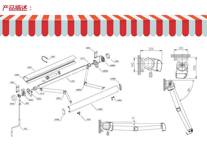 曲臂遮陽篷,它的優(yōu)點(diǎn)是室外空間的利用,使人們的生活更接近于大自然,鮮艷靚麗的顏色為建筑物增添了一道靚麗的風(fēng)景線;根據(jù)所需面積的大小,通過對遮陽篷的伸縮調(diào)節(jié),可以改變建筑外界的色彩與風(fēng)格,曲臂遮陽篷成了您室外良好的選擇;曲臂遮陽篷除了遮陽外還增添了其他許多功能,例如:防雨,防紫外線等;通過對遮陽篷支架及曲臂的改進(jìn),及增加了風(fēng)光雨控制系統(tǒng),無論是下雨還是刮風(fēng),它都能自己自動(dòng)收放,增加了使用壽命,讓您用起來得更加的舒心和放心。