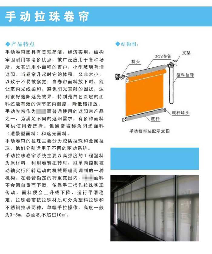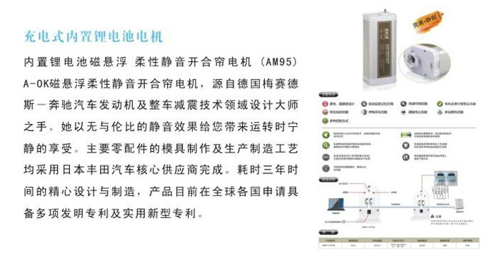 她的先進的設計方案使之具有多項人性化的操作方式 。有電時可以通過遙控器操作開合簾運轉,以及手拉窗簾自動啟動開合功能;停電后更具靈活