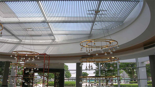 HS150型遮陽天棚百葉是一款現(xiàn)代感的戶外遮陽產(chǎn)品。產(chǎn)品外形簡潔,與采光天頂和鋁合金玻璃幕墻配置,能充分體現(xiàn)現(xiàn)代建筑風(fēng)格。